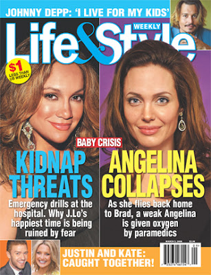 Life & Style Weekly has reported that Saint Angelina, who is rumored to be pregnant with twins, collapsed on her flight home from Iraq two weeks ago.